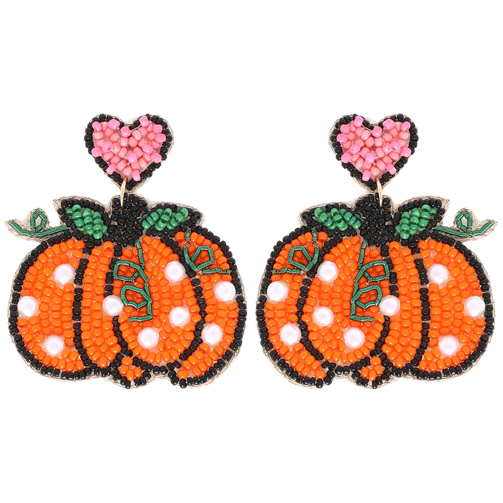2-TIER HEART POST POLKA DOT PEARL STUDDED THANKSGIVING PUMPKIN BEADED EMBROIDERY DANGLE AND DROP EARRINGS