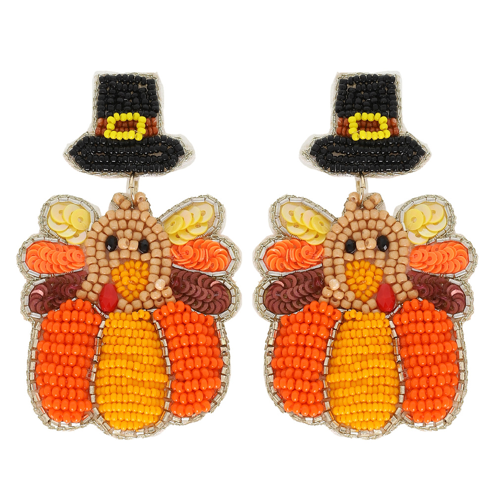 Thanksgiving Pilgrim Hat Turkey Beaded Earrings