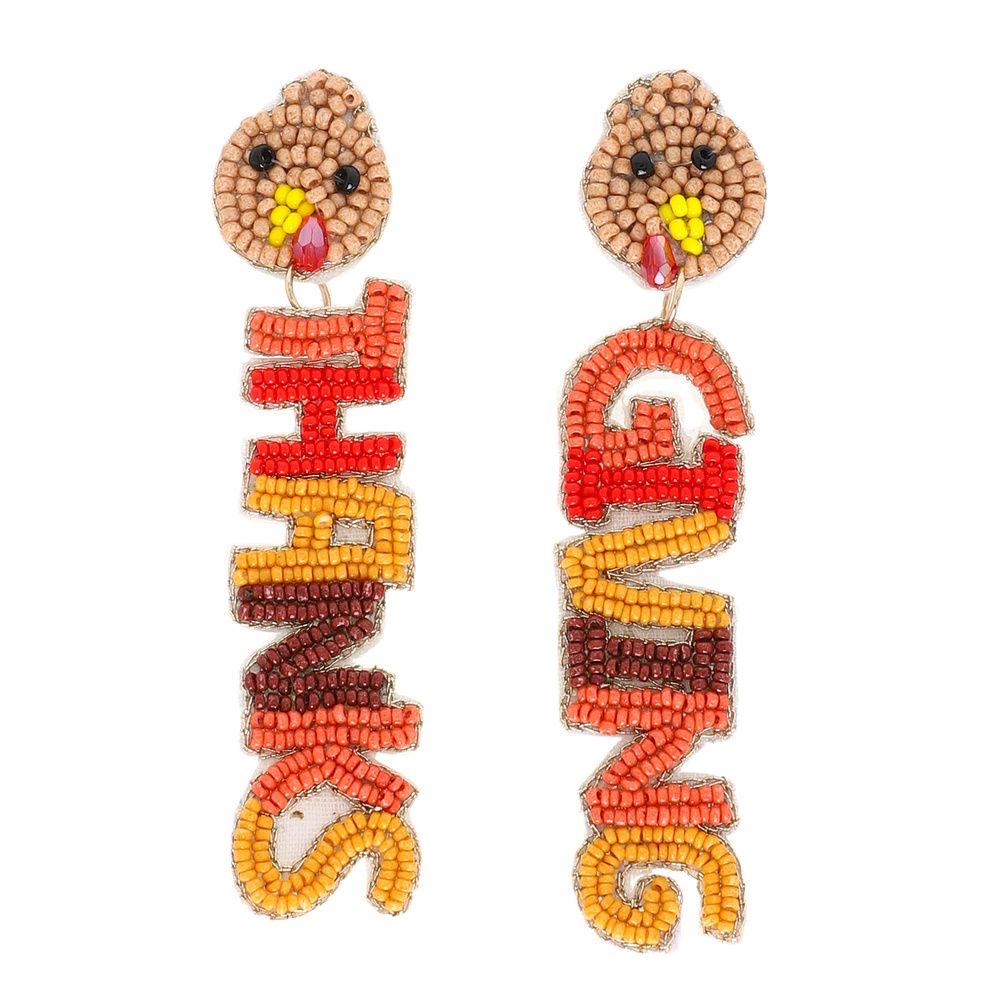 Turkey Thanks-giving Lettering Beaded Earrings