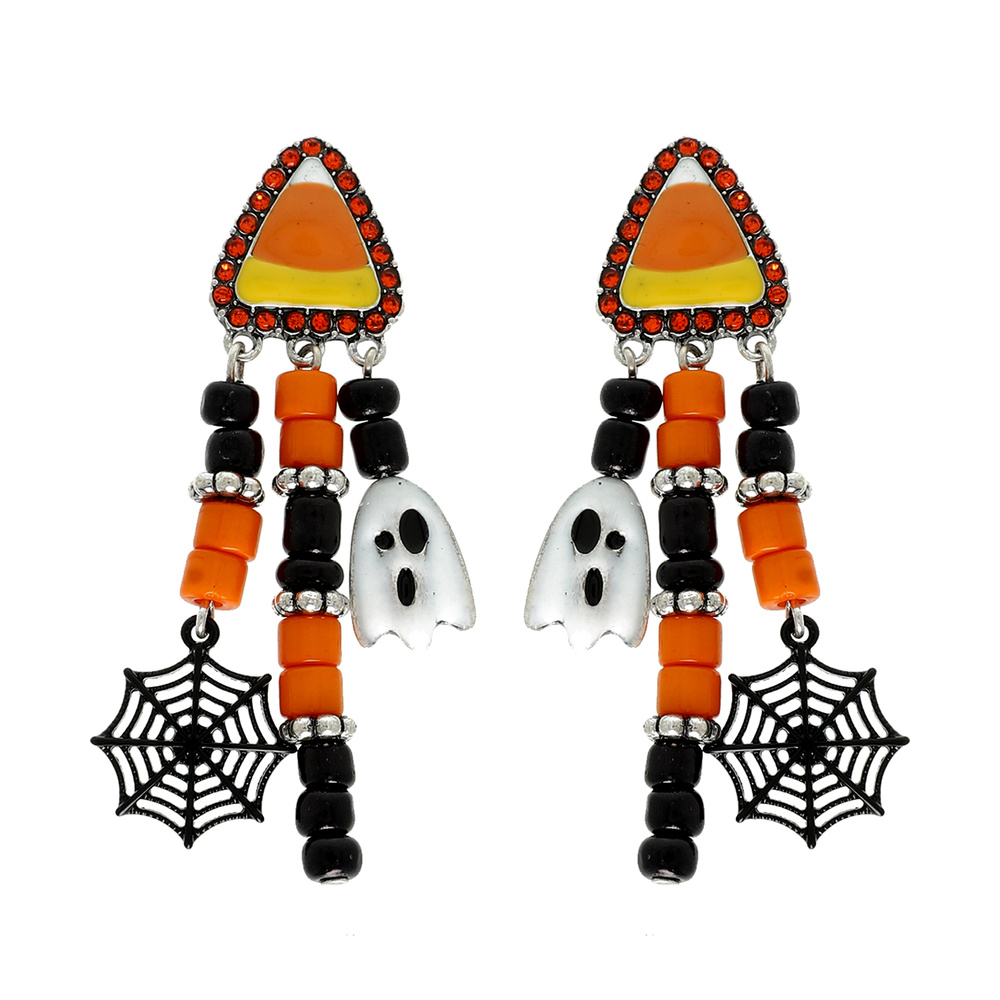 HALLOWEEN CANDY CORN BOO WEB RHINESTONE BEAD CHARM TASSEL EARRINGS