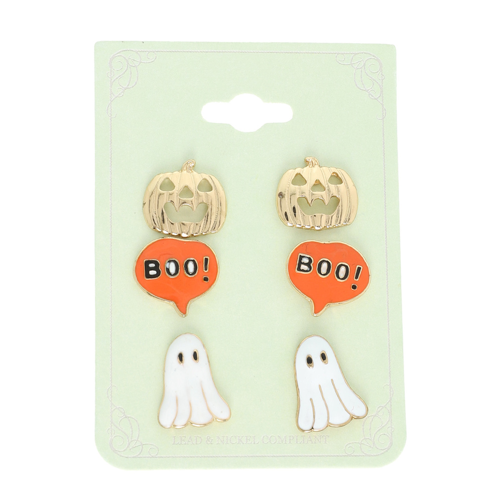 3-PACK HALLOWEEN JACK O' LANTERN BOO GHOST EPOXY POST EARRINGS