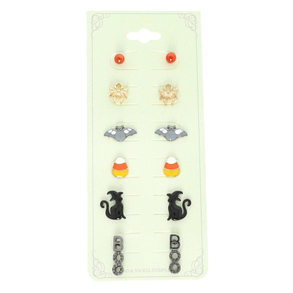 6-PACK MULTI THEMED HALLOWEEN EPOXY POST STUD EARRINGS