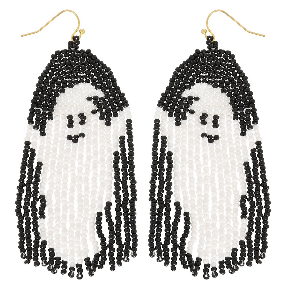 Halloween Ghost Seed Bead Fringe Earrings