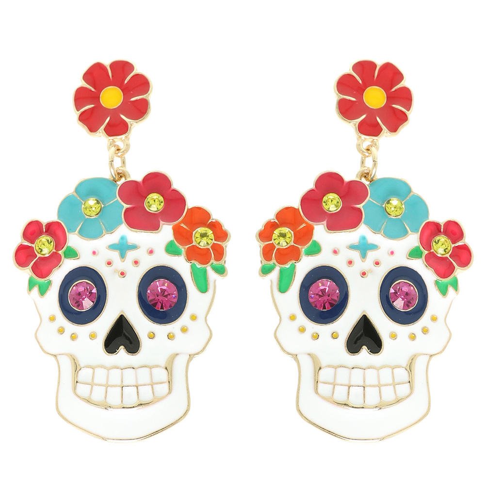 CRYSTAL EMBELLISHED ENAMEL DIA DE LOS MUERTOS SUGAR SKULL POST EARRINGS