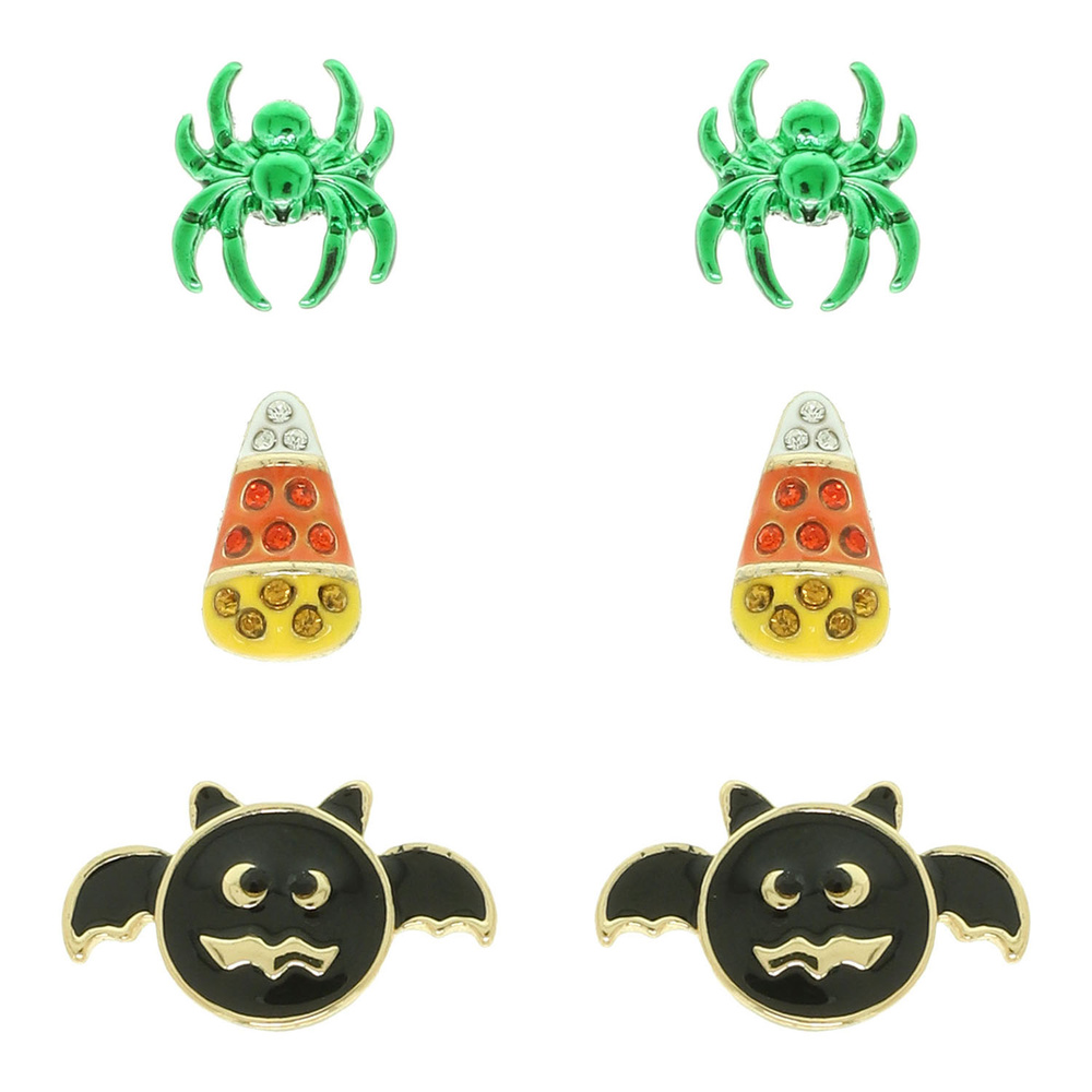 3-PACK HALLOWEEN POST EARRINGS FEATURING ENAMEL CHARMS