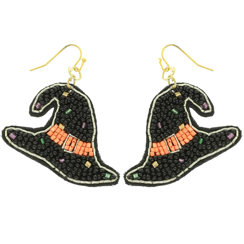 Halloween Witch Hat Seed Beaded Earrings