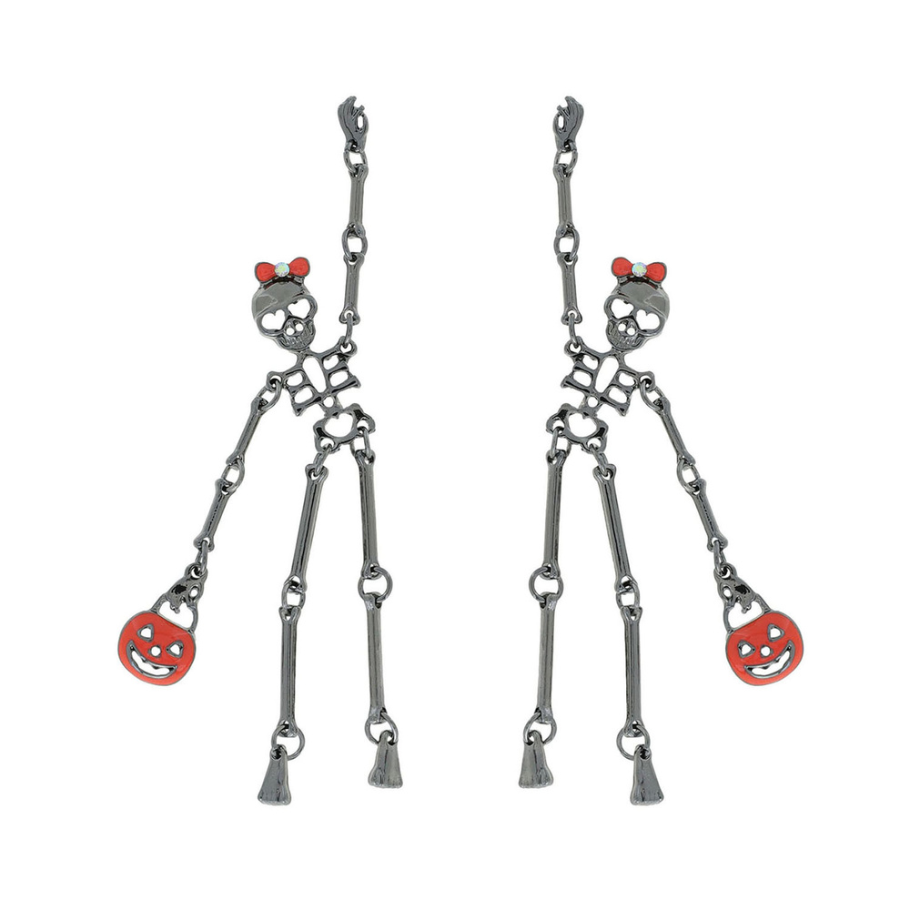 Halloween Skeleton Bone With Jack O Lantern Pumpkin Dangle Earrings