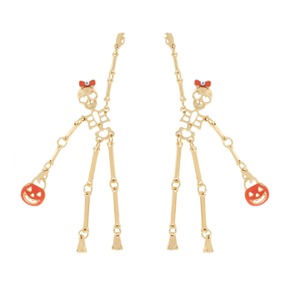 Halloween Skeleton Bone With Jack O Lantern Pumpkin Dangle Earrings