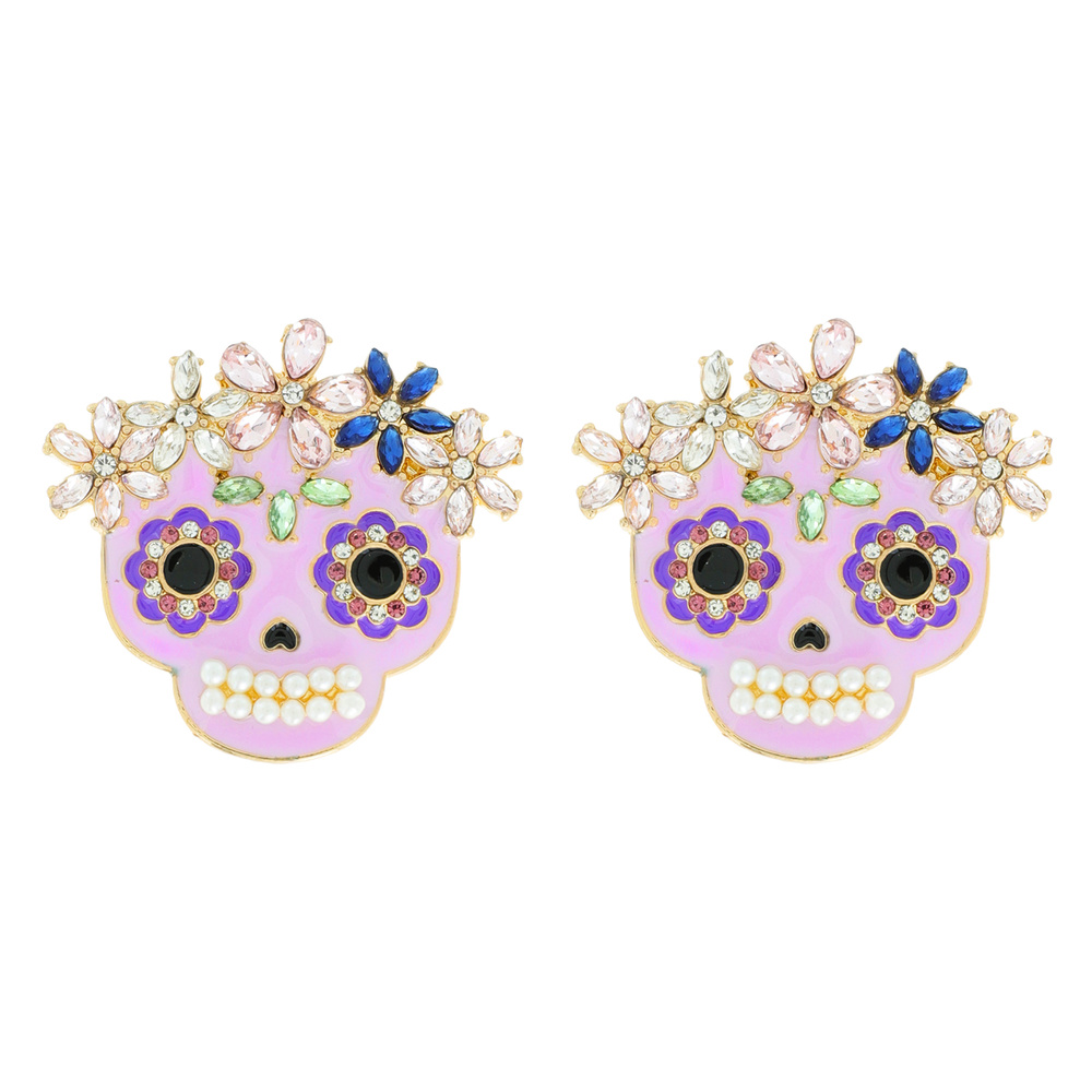 Halloween Sugar Skull Post Earrings Day Of The Dead Dia De Los Muertos