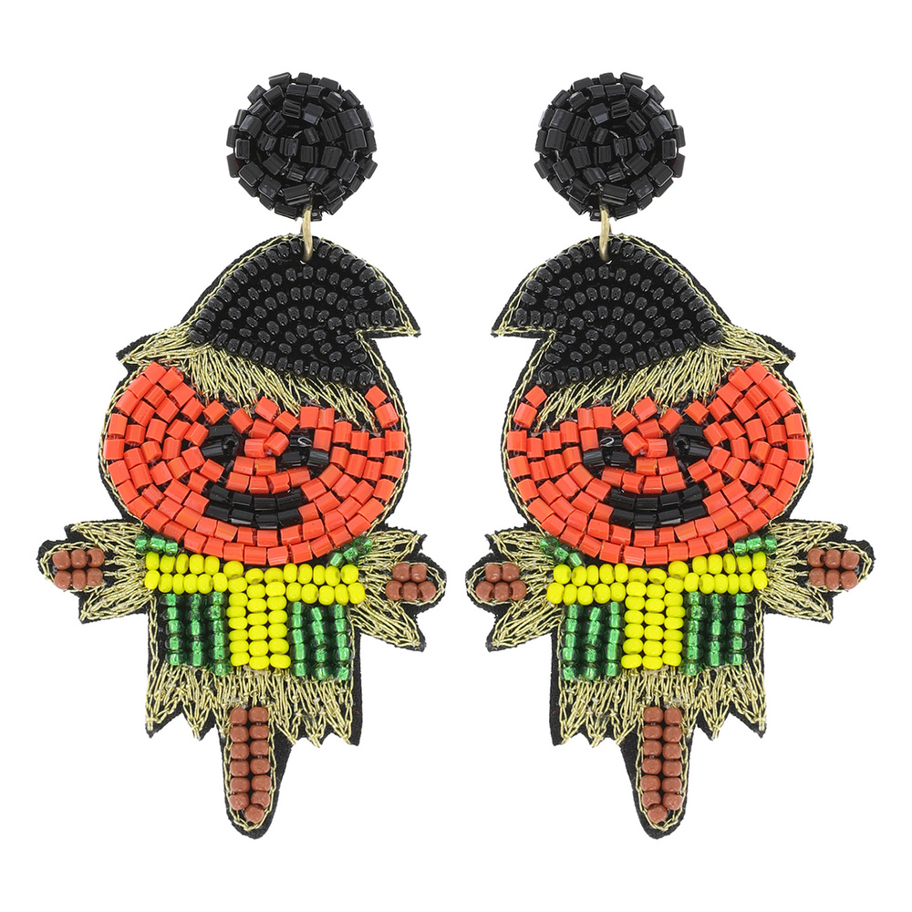 Halloween Fall Thanksgiving Scarecrow Seed Bead Handmade Beaded Dangle And Drop Earrings