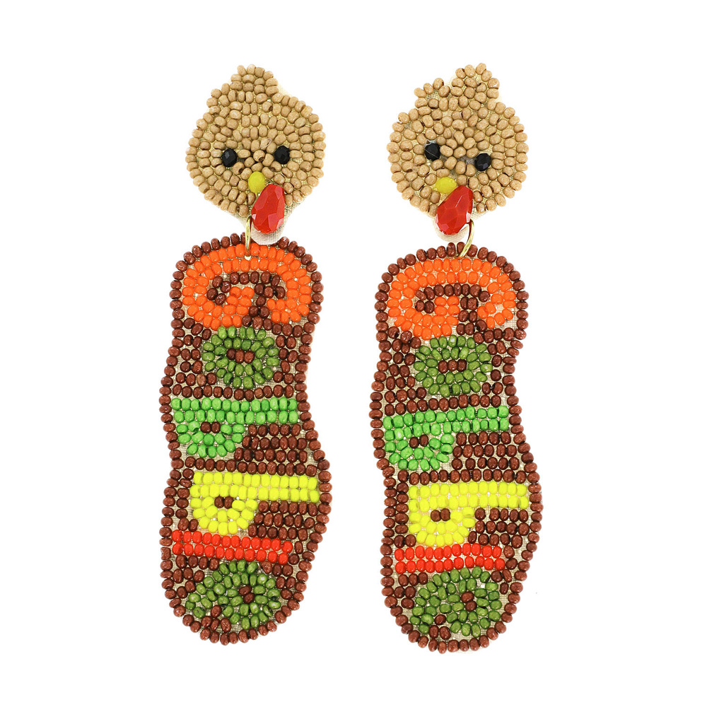 Thanksgiving Gobble Turkey Seed Bead Handmade Beaded Long Drop Earrings