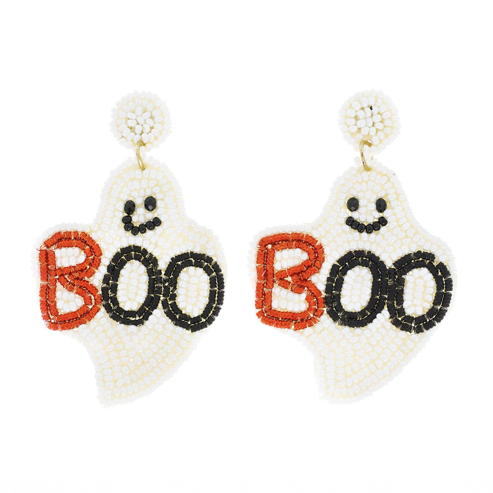 Boo Halloween Ghost Seed Bead Handmade Beaded Dangle And Drop Earrings