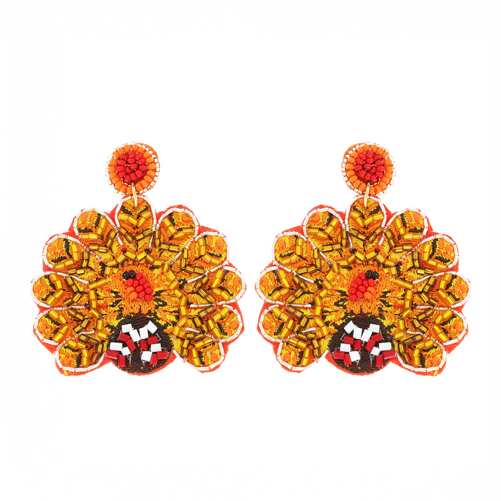 Thanksgiving Turkey Seed Bead Handmade Beaded Embroidery Dangle And Drop Earrings