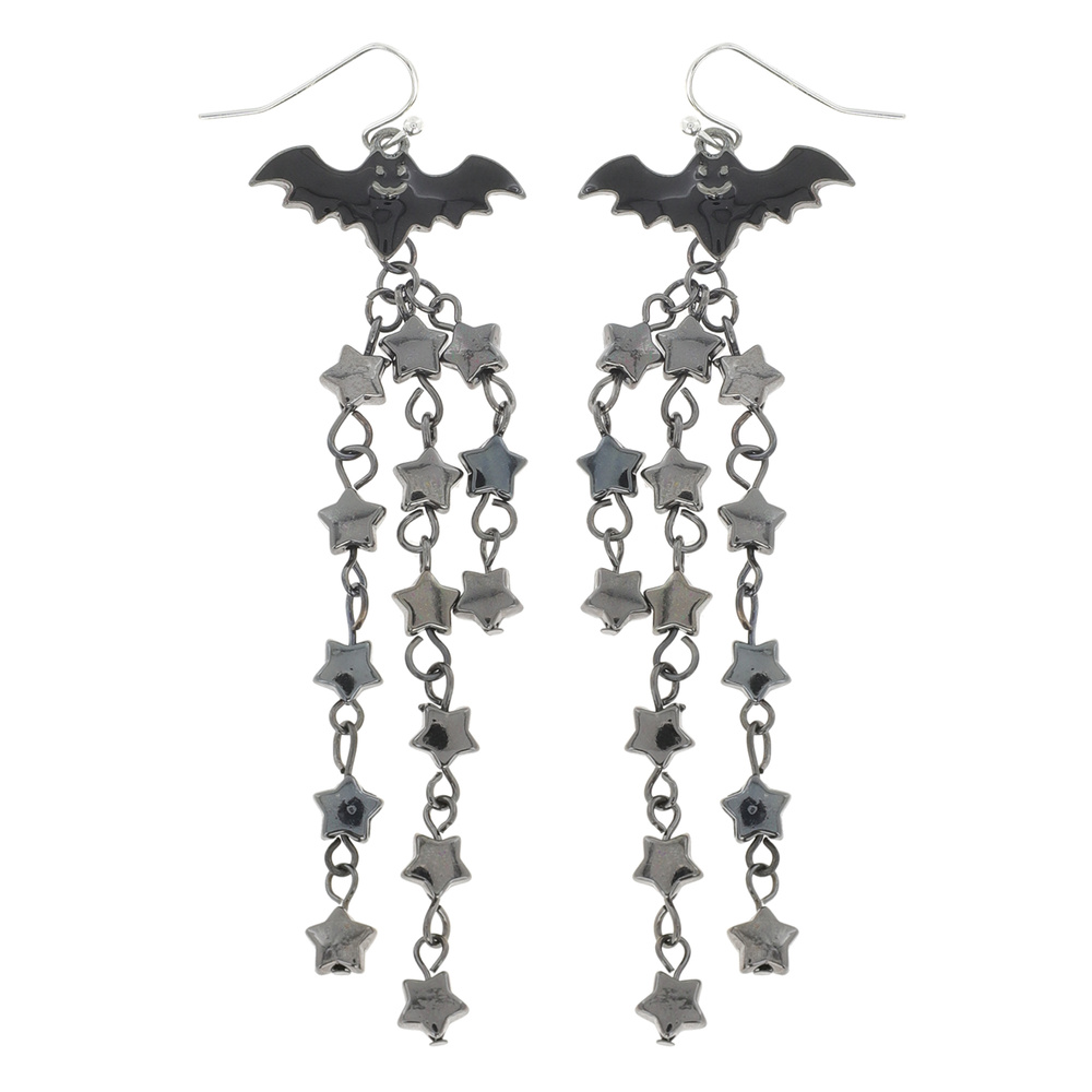 ENAMEL BATS HALLOWEEN STAR TASSEL LONG DROP EARRINGS