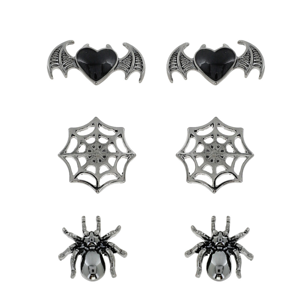 Spider - 3-pair Enamel Coated Halloween Themed Stud Earring Set