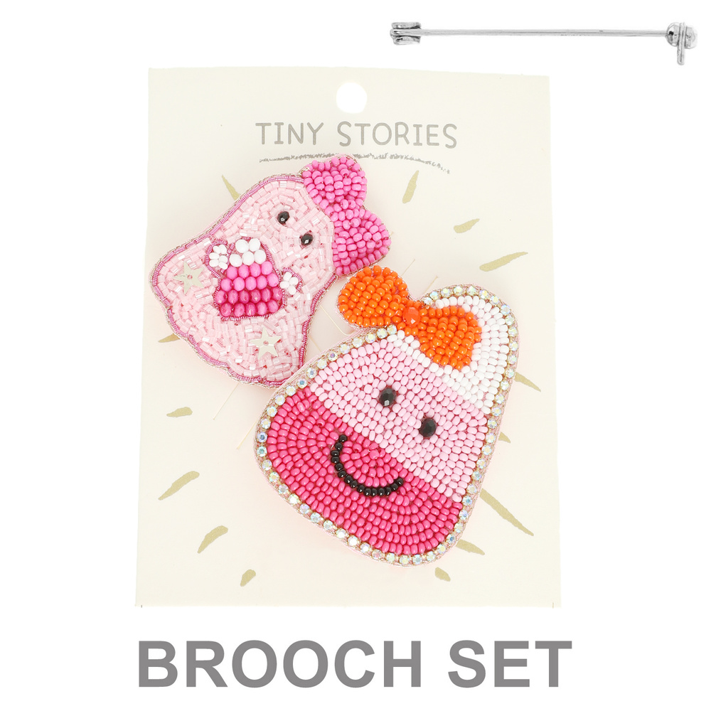 2 PIECE RHINESTONE BEAD EMBELLISHED CANDY CORN AND GHOST BROOCH PIN SET