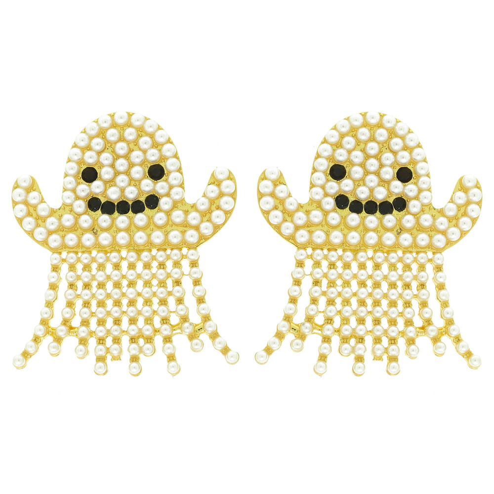 GHOST POST EARRINGS WITH PEARL ACCENTS IN GOLD-TONE METAL