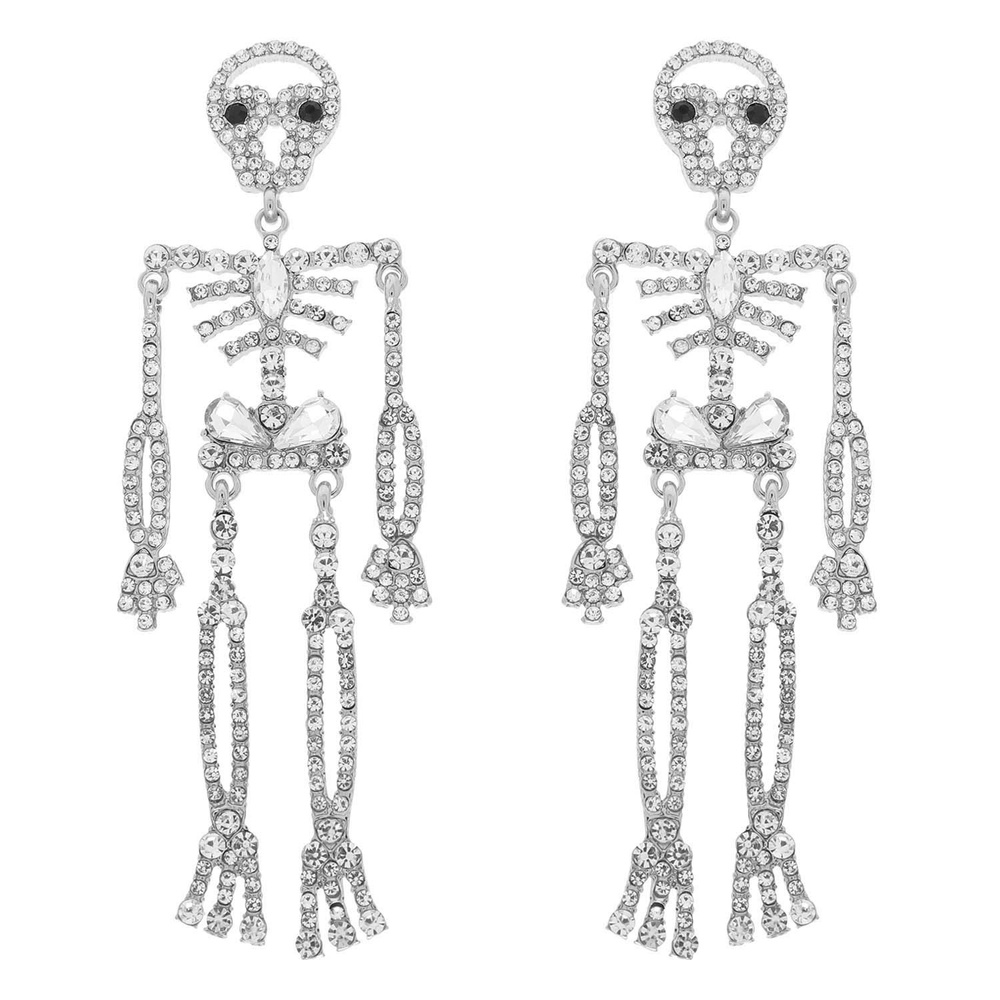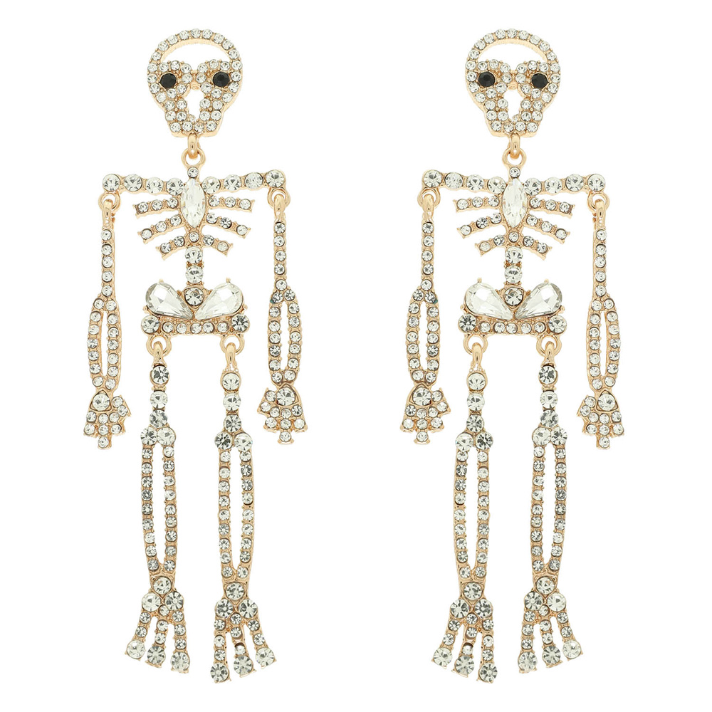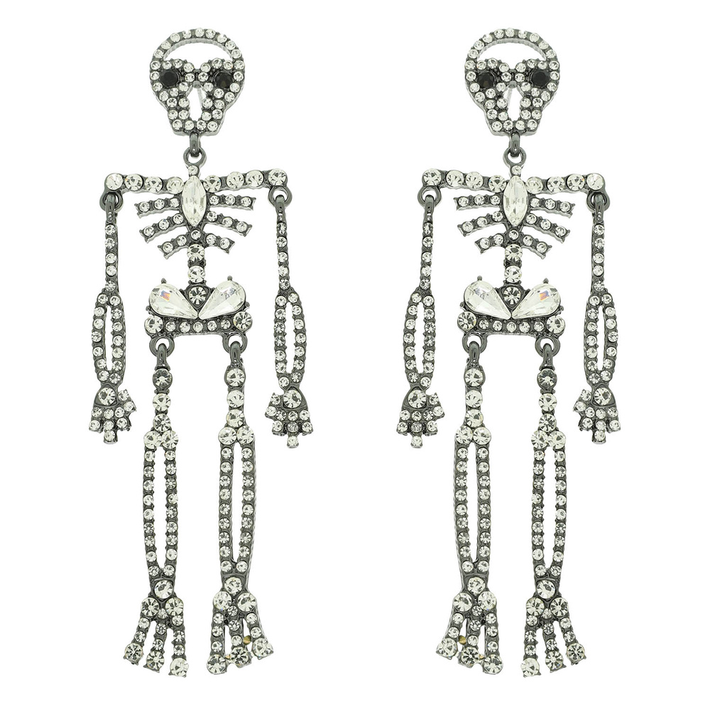 HALLOWEEN MOVING SKELETON POST EARRINGS WITH CRYSTAL EMBELLISHMENTS
