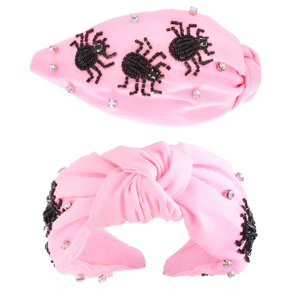 HALLOWEEN CRYSTAL RHINESTONE BEADED BLACK SPIDER BEADED TOP KNOT HANDMADE HEADBAND
