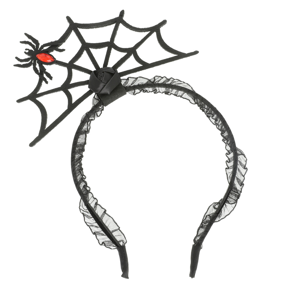HALLOWEEN SPIDERWEB HEADBAND WITH RED CRYSTAL SPIDER