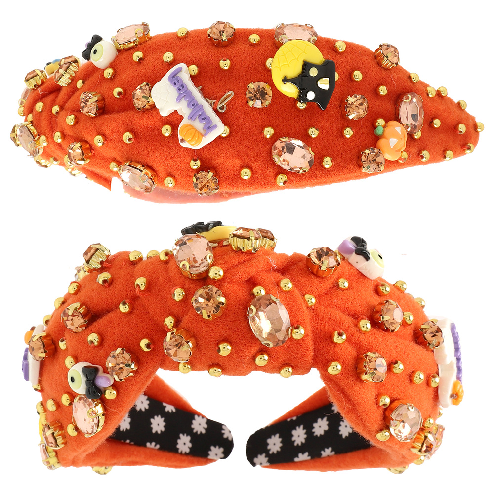 HALLOWEEN THEMED CRYSTAL CHARM BEAD EMBELLISHED KNOTTED HEADBAND