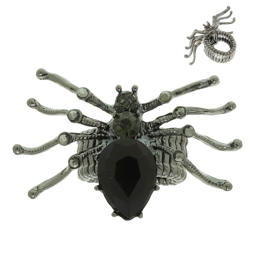 HALLOWEEN CRYSTAL RHINESTONE EMBELLISHED SPIDER STRETCH RING
