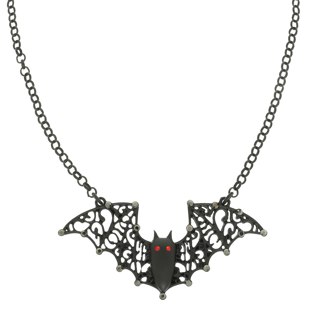 HALLOWEEN MATTE FINISH BLACK BAT PENDANT CHAIN NECKLACE