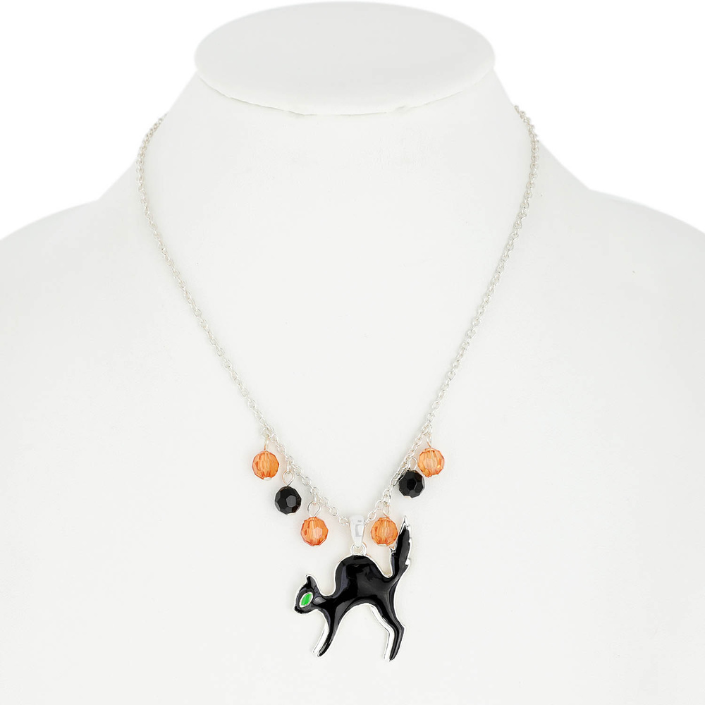 Halloween Black Cat Pendant Necklace