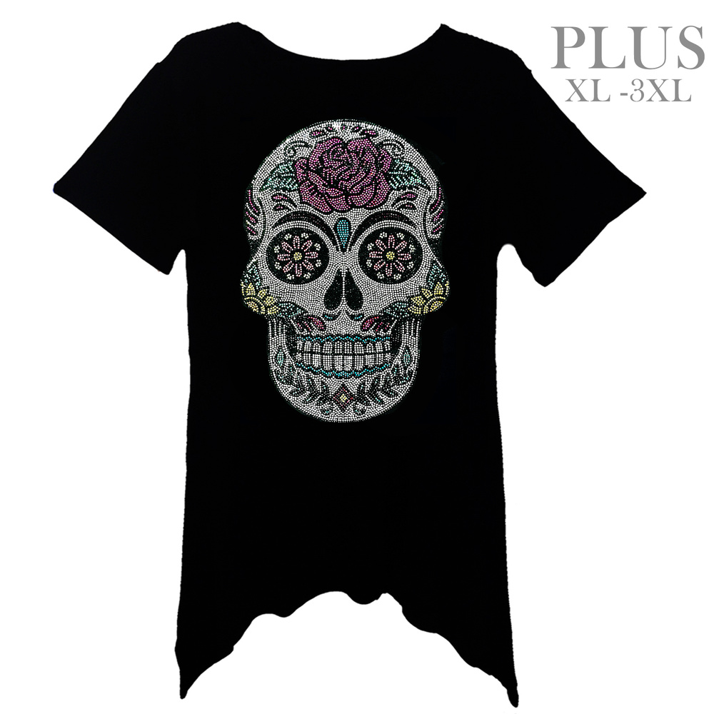 SKULL FL HOTFIX RSTONE PS A SHIRT PLUS SIZE