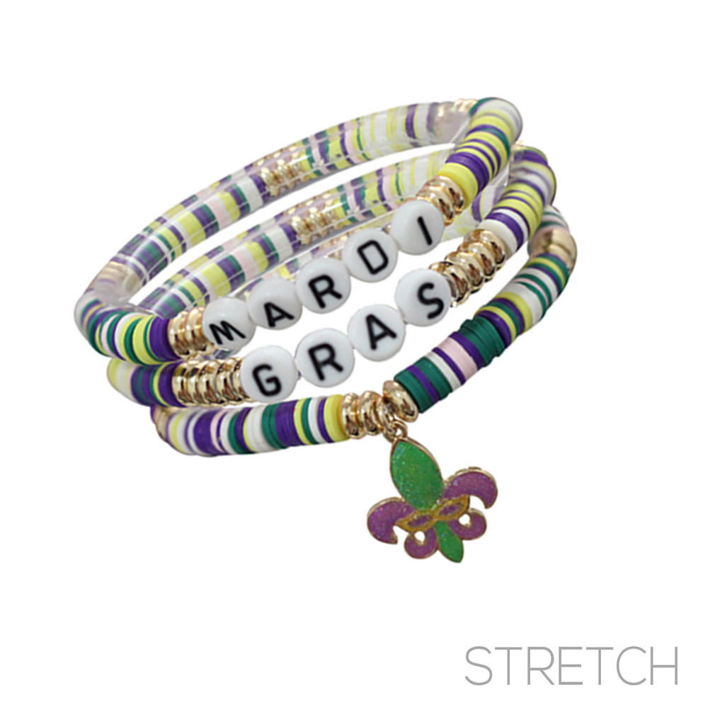 MARDI GRAS THEME FLEUR DE LIS MULTI-STRAND STRETCH BRACELET