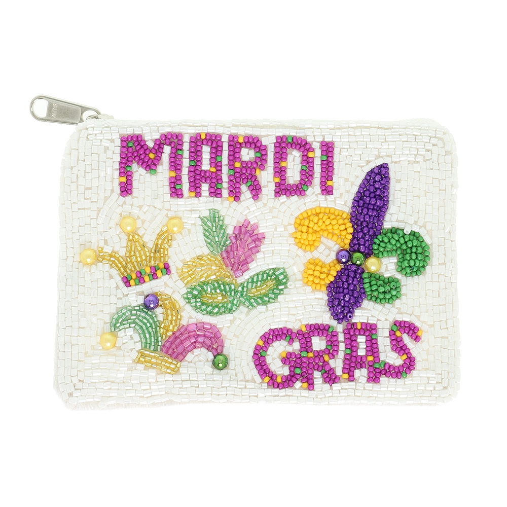 MARDI GRAS FESTIVAL THEME SEED BEAD EMBELLISHED COIN BAG