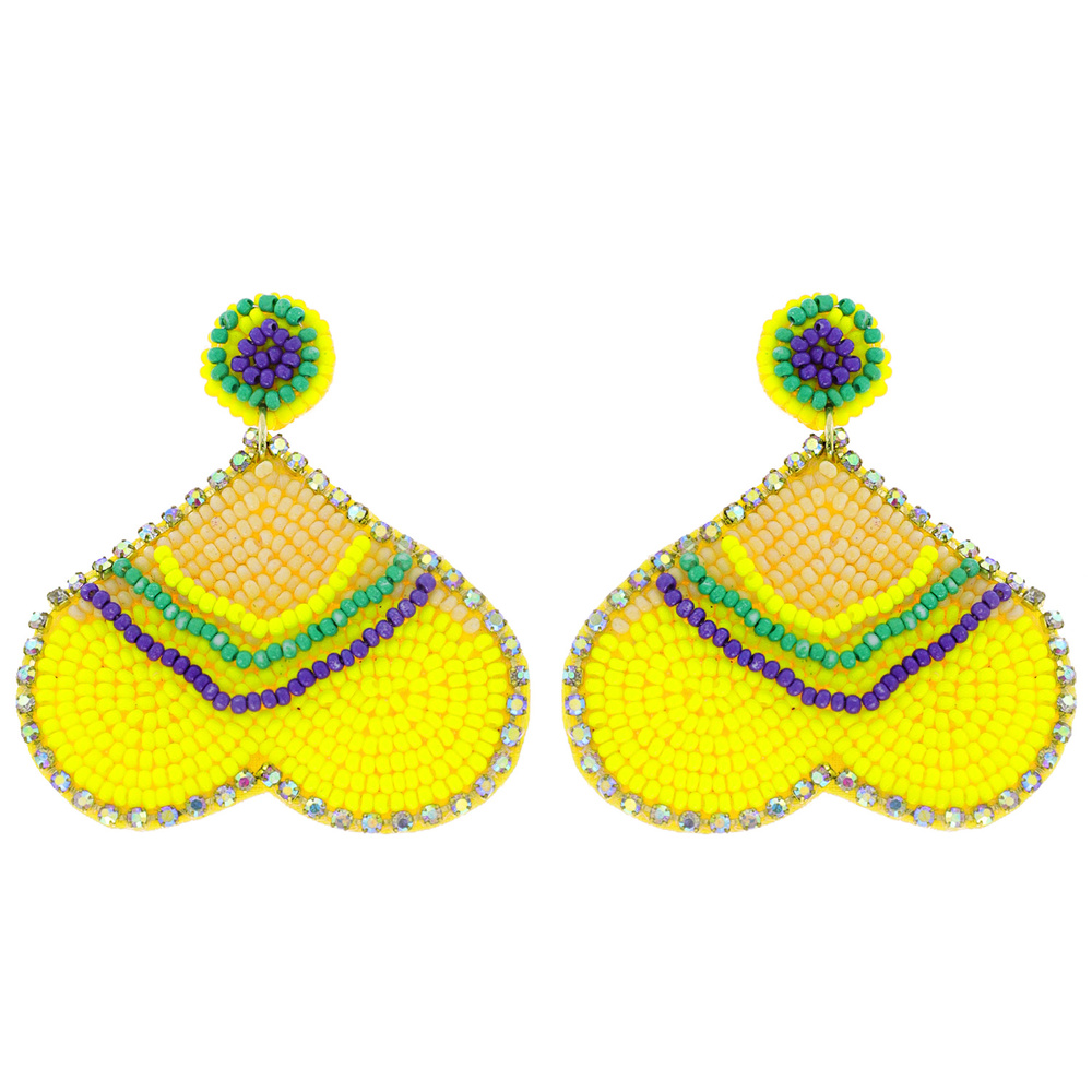 2-tier Jeweled Mardi Gras Bust Bosom Seed Bead Handmade Beaded Dangle And Drop Earrings