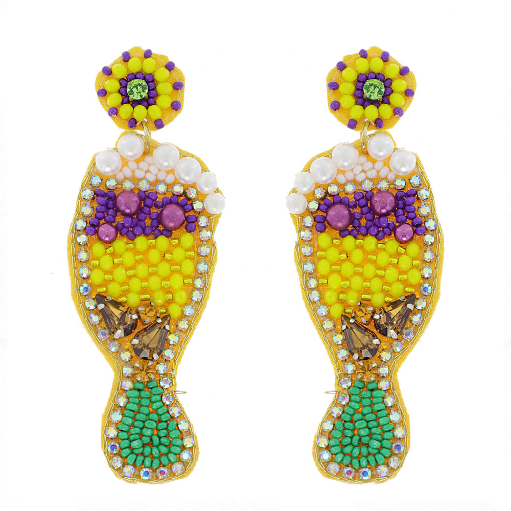 Jeweled Mardi Gras Cocktail Drink Handmade Beaded Embroidery Novelty Dangle And Drop Earrings