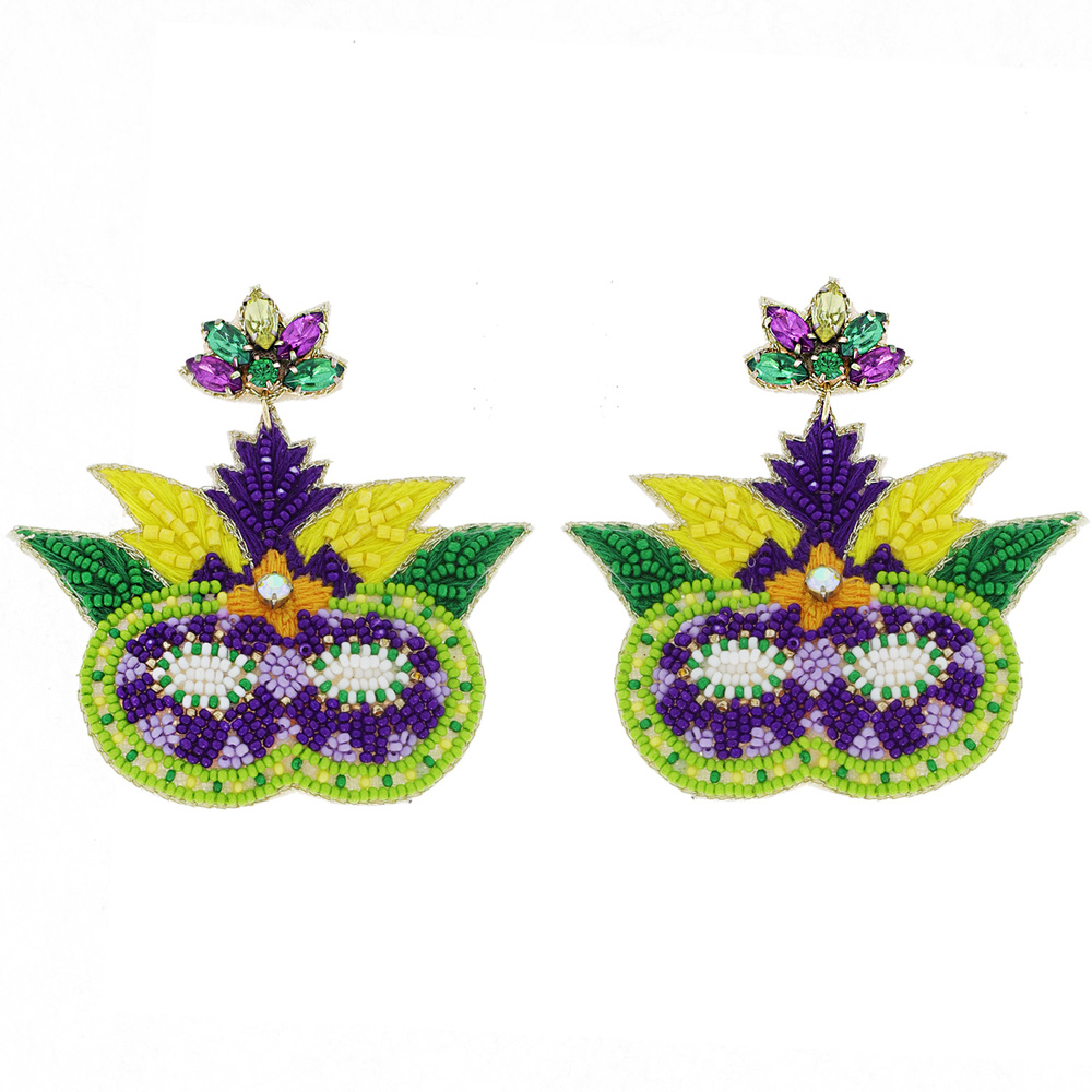 Jeweled Mardi Gras Carnival Masquerade Mask Handmade Beaded Embroidery Novelty Dangle And Drop Earrings