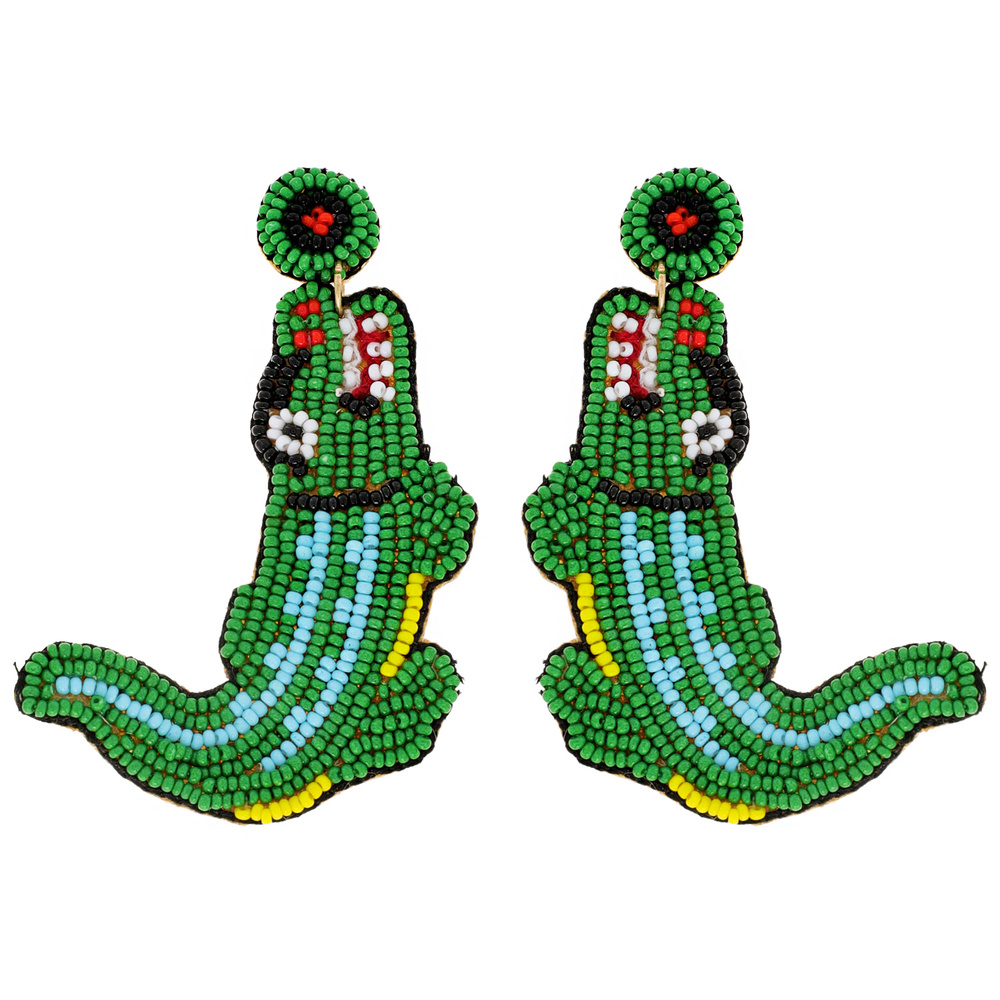 2-TIER HANDMADE BEADED NOVELTY DANGLE AND DROP CROCODILE EARRINGS