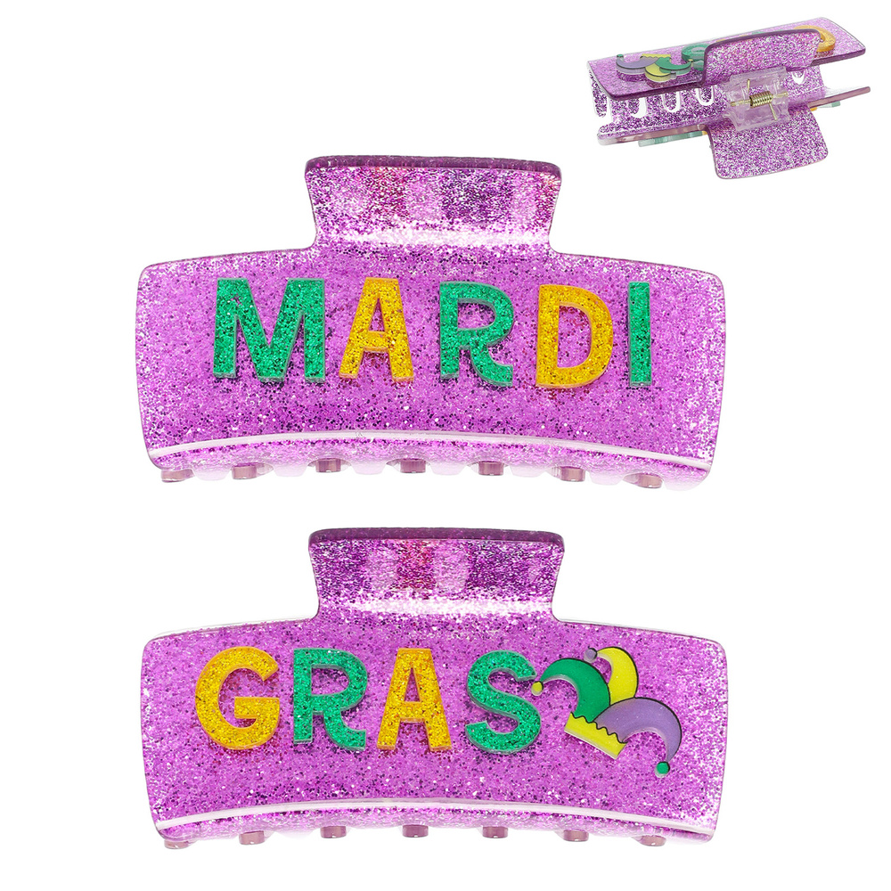 MARDI GRAS GLITTERED ACRYLIC HAIR CLAW CLIP FOR TRENDY UPDO HAIRSTYLES