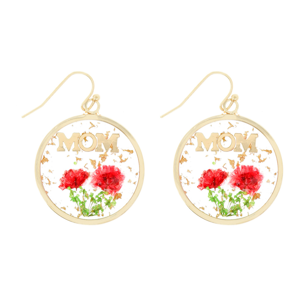 MOM NATURAL DRIED FLOWER ROUND EARRINGS RESIN FLORAL JEWELRY