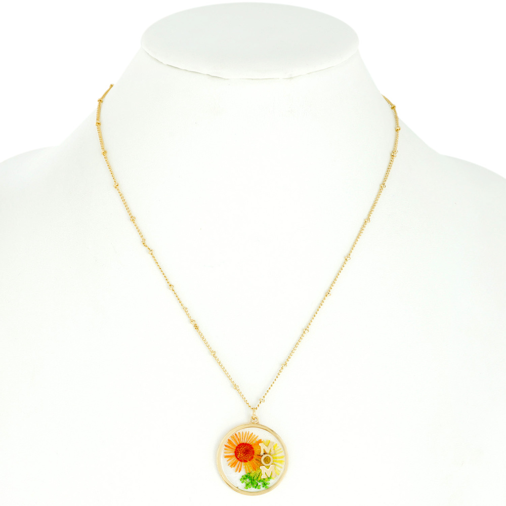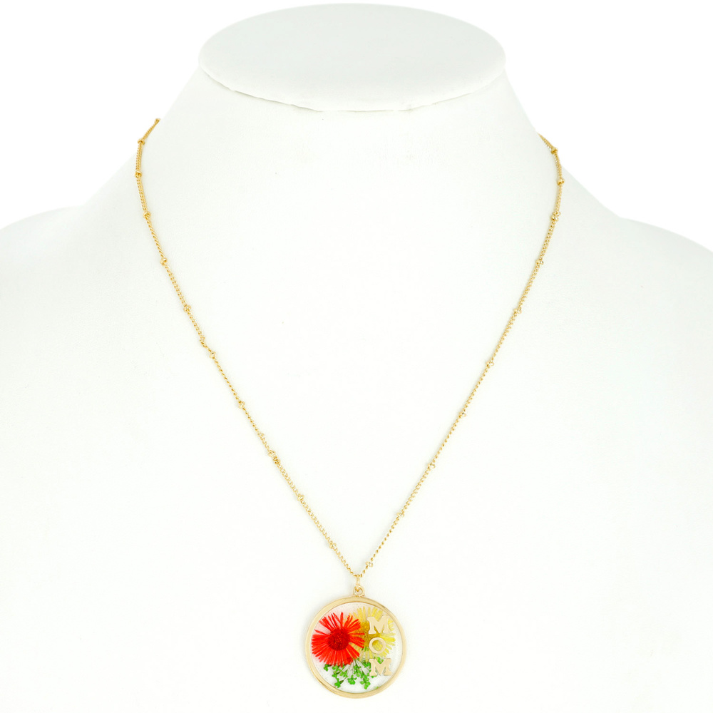 MOM NATURAL DRIED FLOWER ROUND PENDANT NECKLACE RESIN FLORAL JEWELRY