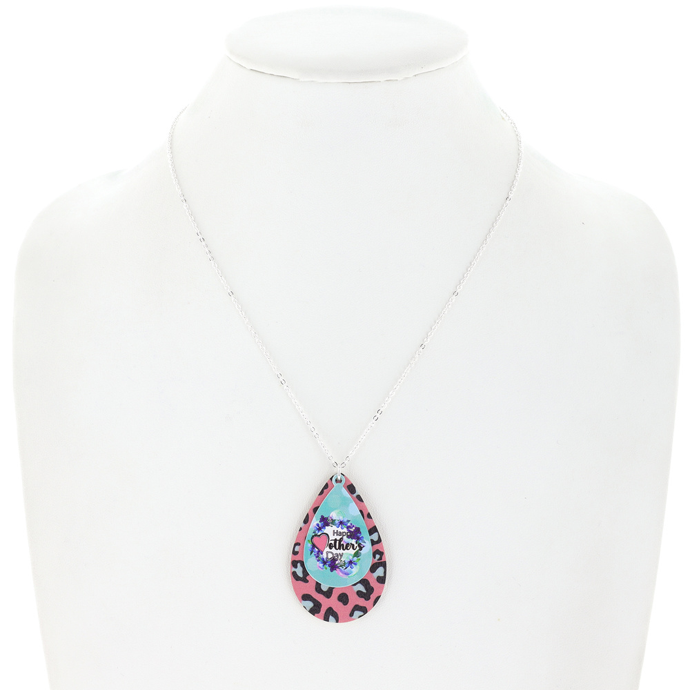 "HAPPY MOTHER'S DAY" MOTHER'S DAY THEMED WOODED GRAPHIC DOUBLE LAYER TEARDROP ADJUSTABLE PENDANT NECKLACE