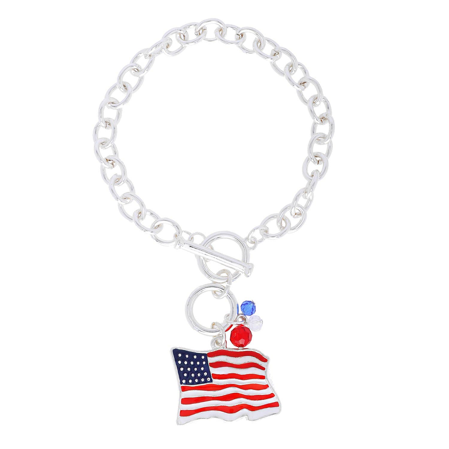 Patriotic Usa Flag Enamel Coated Toggle Charm Bracelet