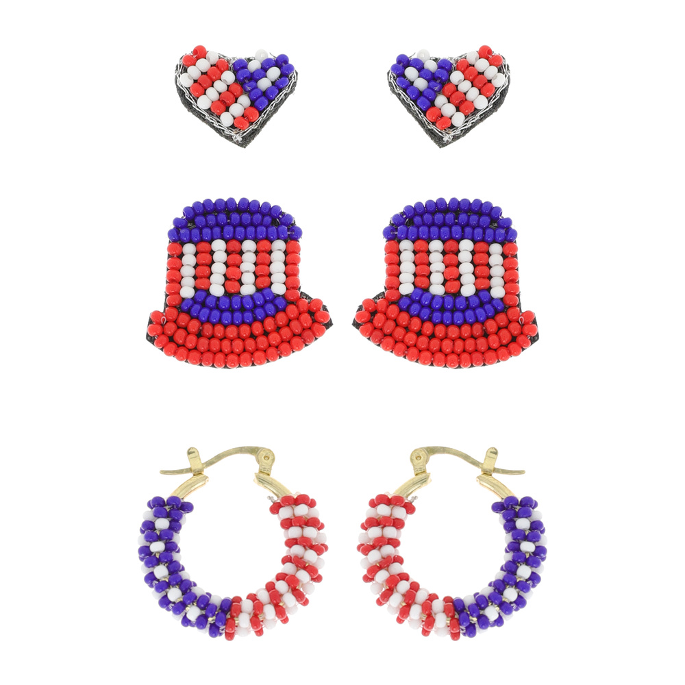 3-PAIR ASSORTED PATRIOTIC BEADED EARRING SET