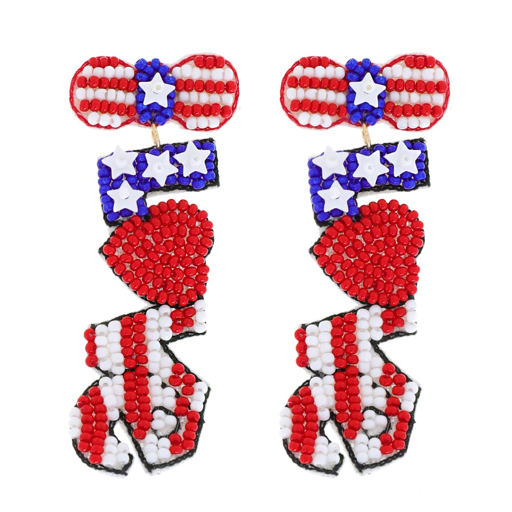 2-tier "love" Usa Flag Pattern Patriotic Beaded Embroidery Long Drop Earrings