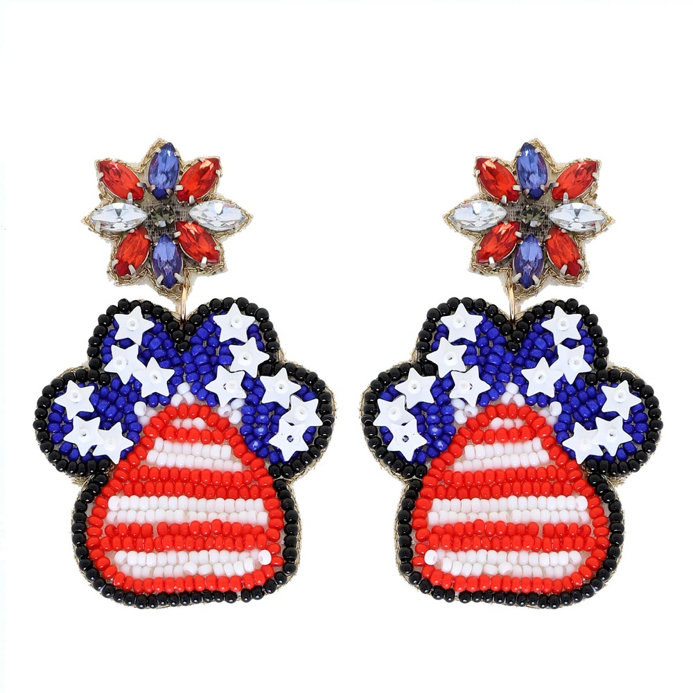 2-tier Jeweled Patriotic Paw Beaded Embroidery Dangle And Drop Earrings