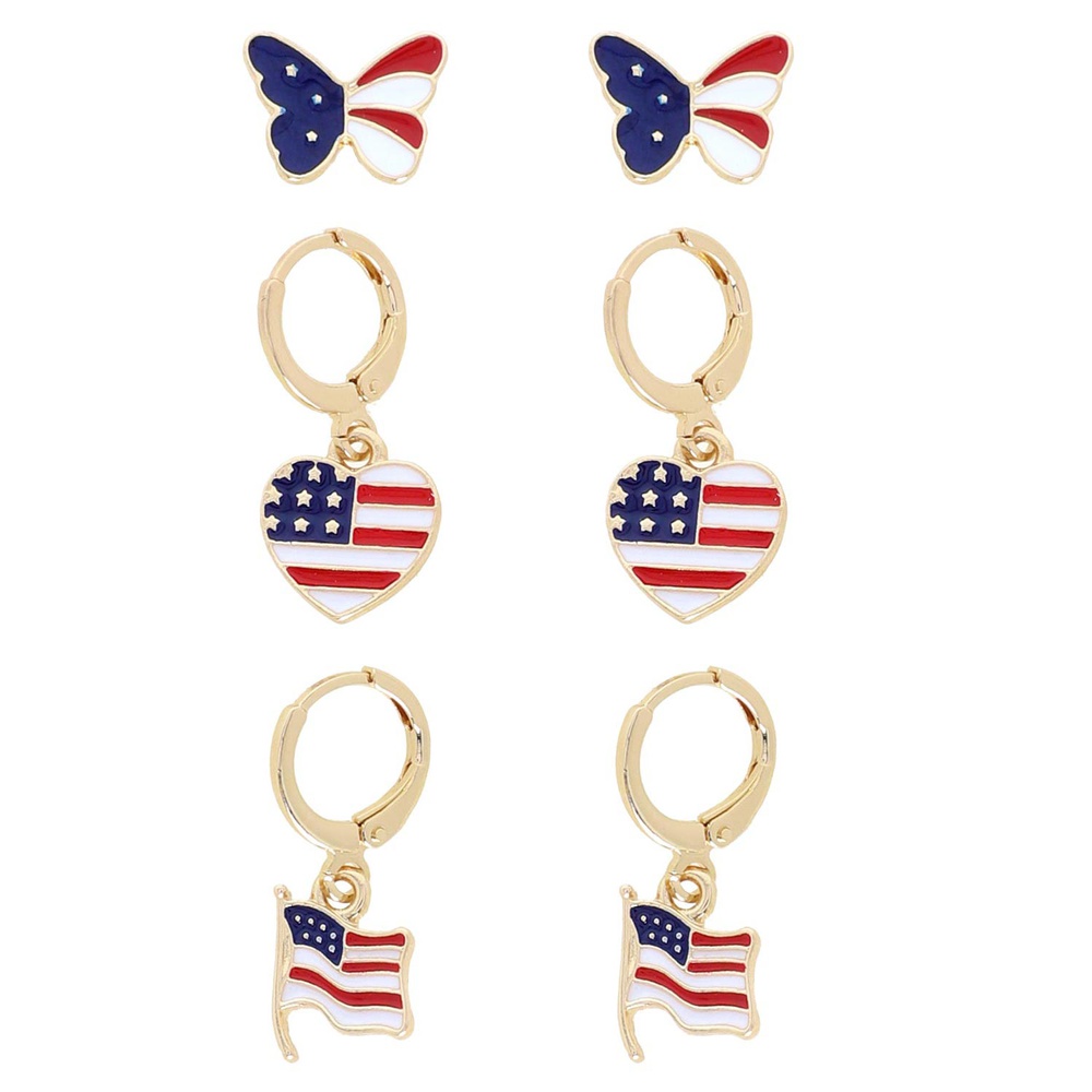 3-pair Patriotic Assorted Open Hoop Earring Set