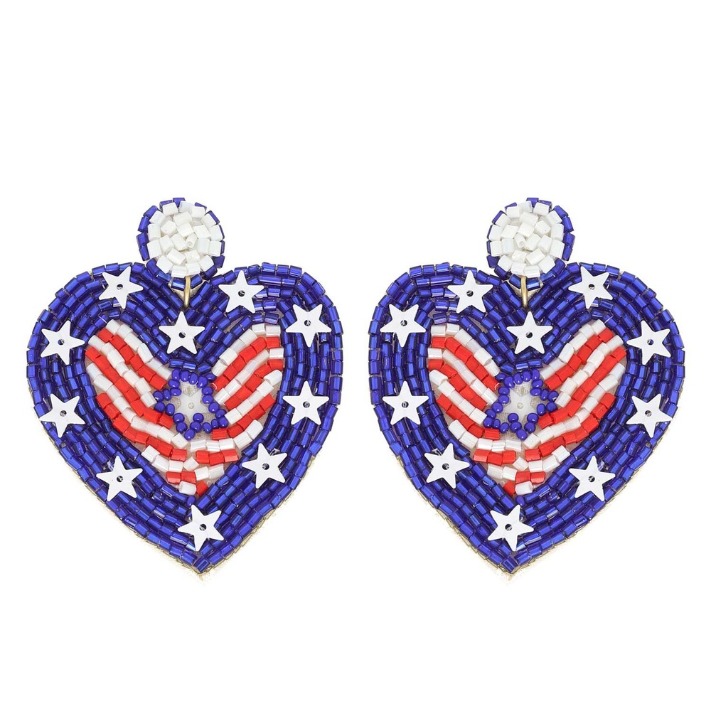 Jeweled Patriotic Heart Shaped Beaded Earrings
