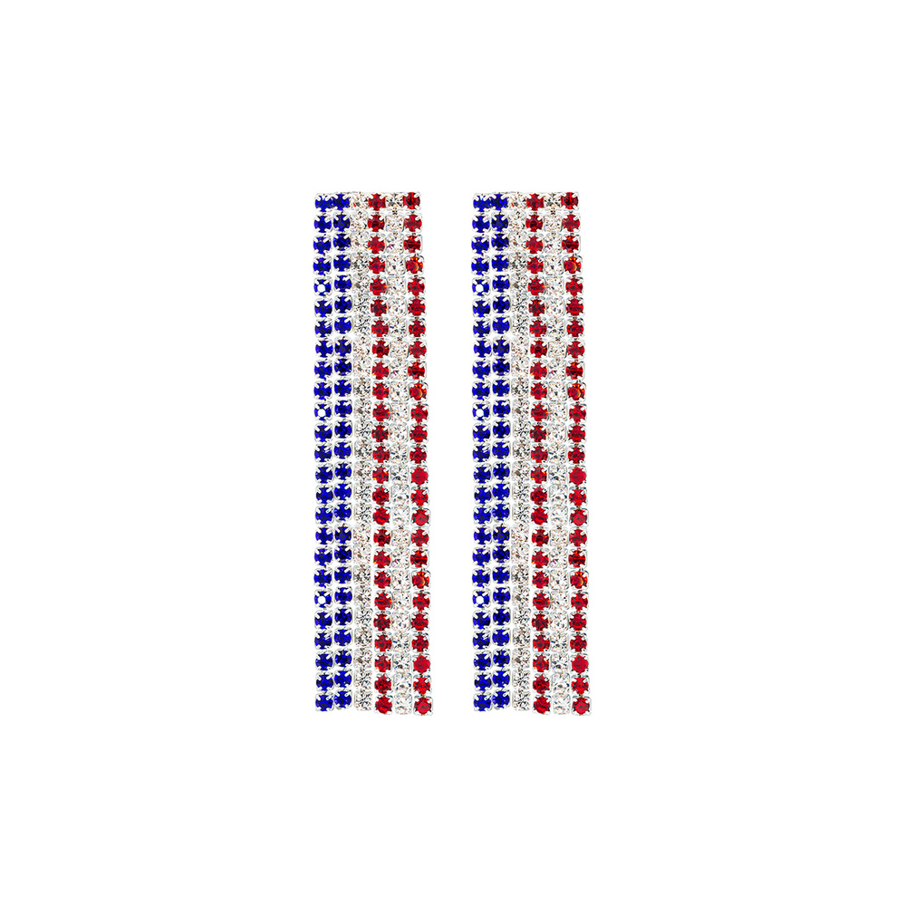 PATRIOTIC USA FLAG LONG DROP CRYSTAL TASSEL POST EARRINGS
