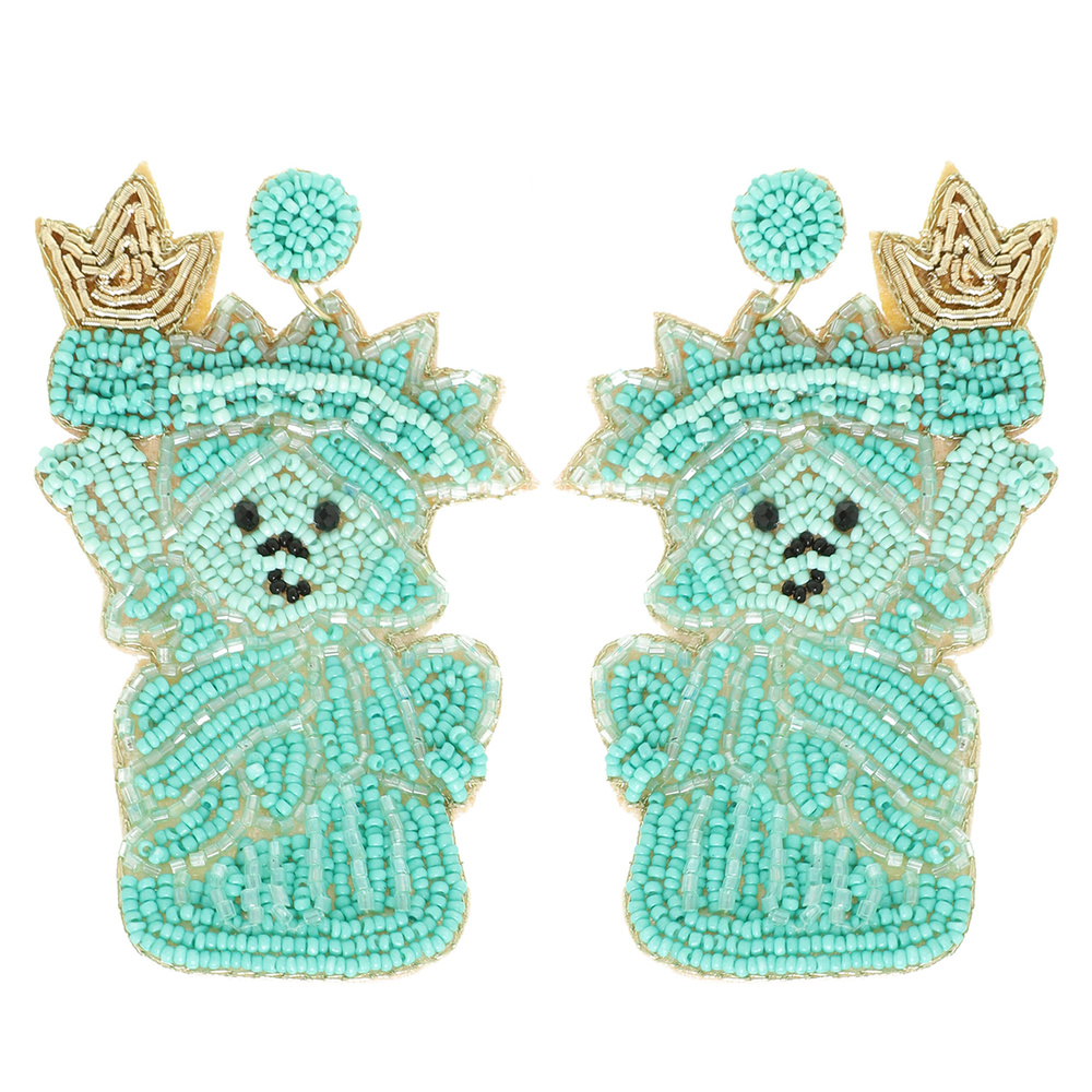 LADY LIBERTY THE STATUE OF LIBERTY BEADED POST DANGLE EARRINGS