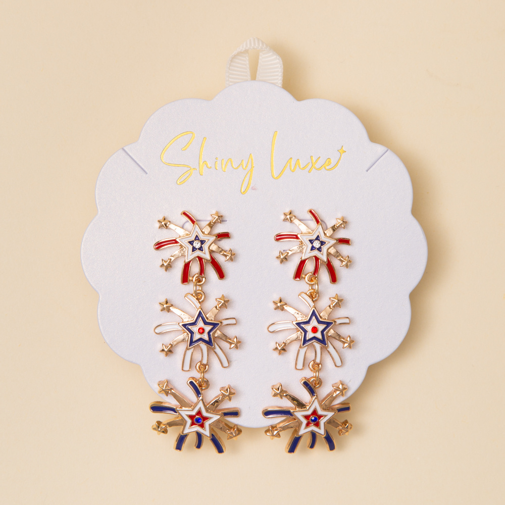 USA THEMED ENAMEL STAR POST DANGLE EARRINGS