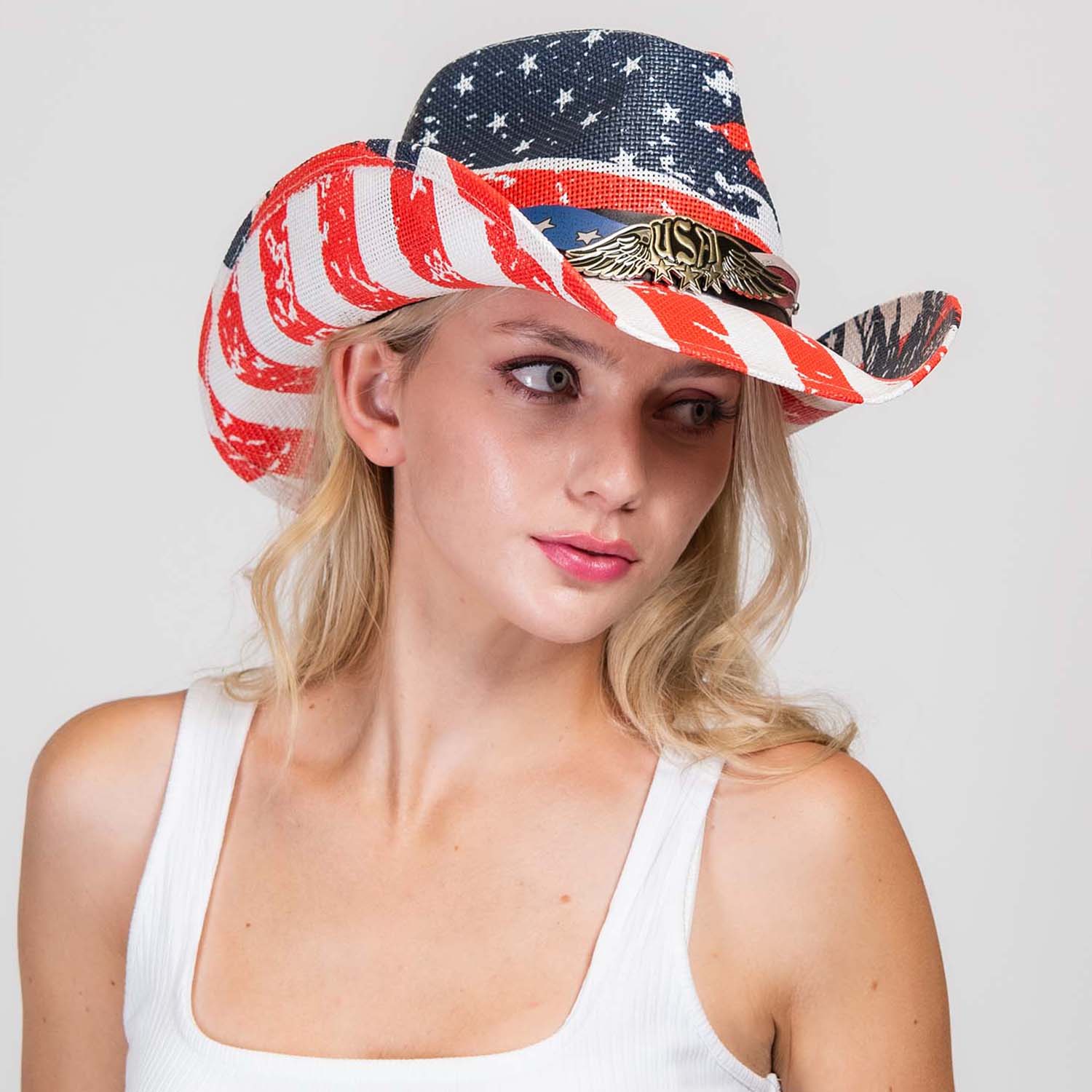 Patriotic Western Usa Flag Paper Braid Cowboy Hat