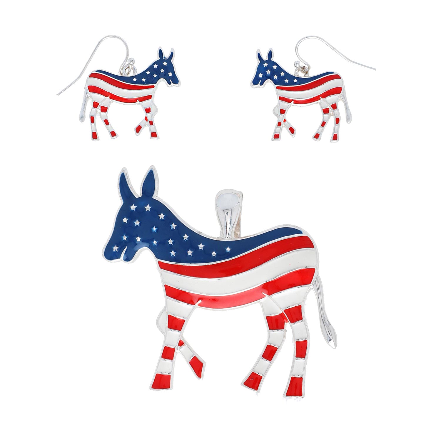 PATRIOTIC DEMOCRAT DONKEY USA FLAG PATTERN PENDANT AND EARRINGS SET **PENDANT ONLY NO CHAIN NECKLACE INCLUDED**